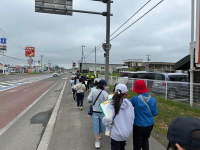 旭小を出発し、美幌中の方へ歩いて行った後、国道の方へも回り学校に戻ってきました。